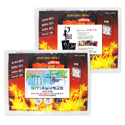 최소수량미만 제작가능여부 인쇄방법 스티커인쇄 제품재질 핫팩 제품크기